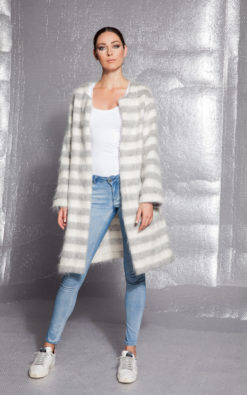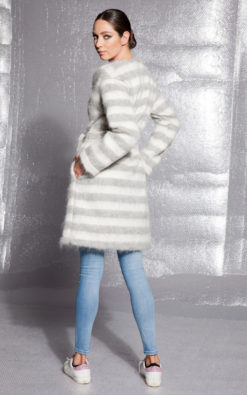 Warm coat featuring self-tie belt and side pockets. The button-less placket and long length contribute to cozy feeling.