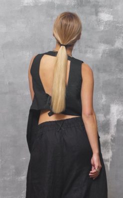 This Women’s Black Linen Waistcoat is the perfect addition to any wedding or special event wardrobe. With its lightweight and breathable fabric, this Avant Garde clothing piece is perfect for any minimalist goth look. The short sleeve top is designed for a tailored fit and features a linen construction that is both stylish and comfortable. It’s a great way to add a touch of steampunk to your look. Whether you’re attending a wedding or a special event, this black waistcoat is the ideal statement piece.
