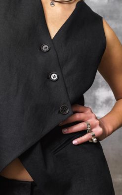 – Women’s Black Linen Waistcoat is perfect for those looking for avant garde clothing for wedding or minimalist goth styles.